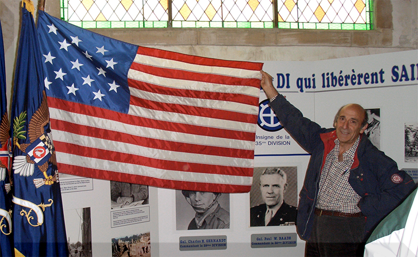 Local historian at the WWII Museum in St. Lo, France. Michael and Jean Mignon both work at the museum and volunteered to help us with the locations and research in the hedgerow country of Normandy. They also came to present our veterans with a letter and medallion from the town of St. Lo and helped us during our location filming especially finding specific areas. Each morning they would meet us at the hotel and guide us to the many locations we sought for filming. They are still great supporters of our American WWII veterans.